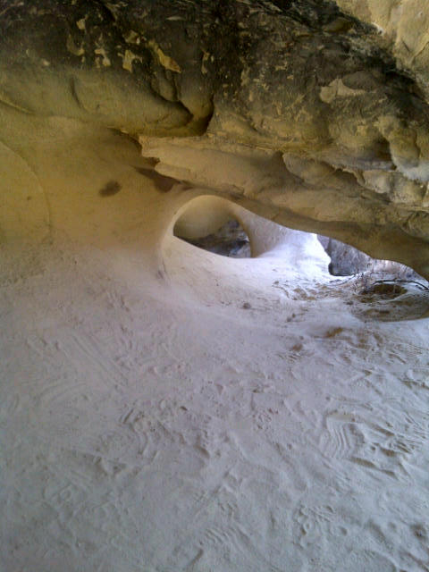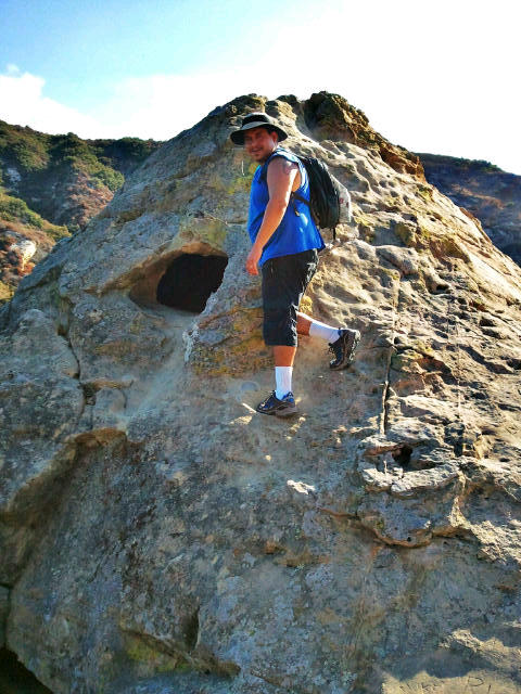 At the 1.5 mile mark you will reach a junction, go right, and proceed on Wood Canyon Trail. This trail is very popular with bikers so be aware of your surroundings because they come flying down the trail. Along the trail you will notice Cave Rock on your left. Save that trail for the way back! After .5 miles you will reach the junction with Dripping Cave trail go left for .5 miles until you reach the cave. The cave is none like I’ve seen in OC. It’s very large and appears to be next to a creek bed and is hidden behind a grove of trees. It’s no wonder why the Bandits used this as a hide out.