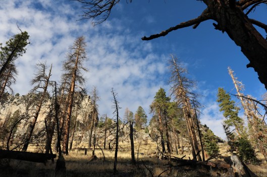 The trail passes through the old burn area of the Carpenter1 fire. You’ll the the scars along the way. Towering Ponderosa Pines dominate this first section of trail.